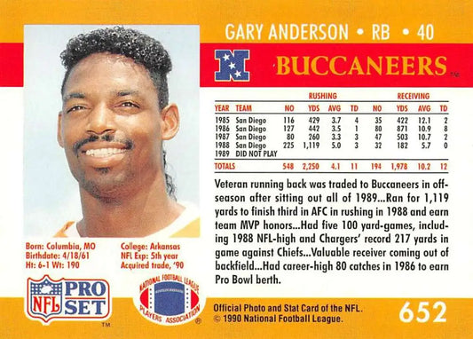 1990 Pro Set #652 Gary Anderson NM-MT Tampa Bay Buccaneers Football Card