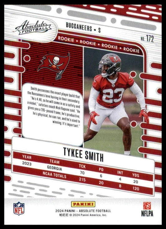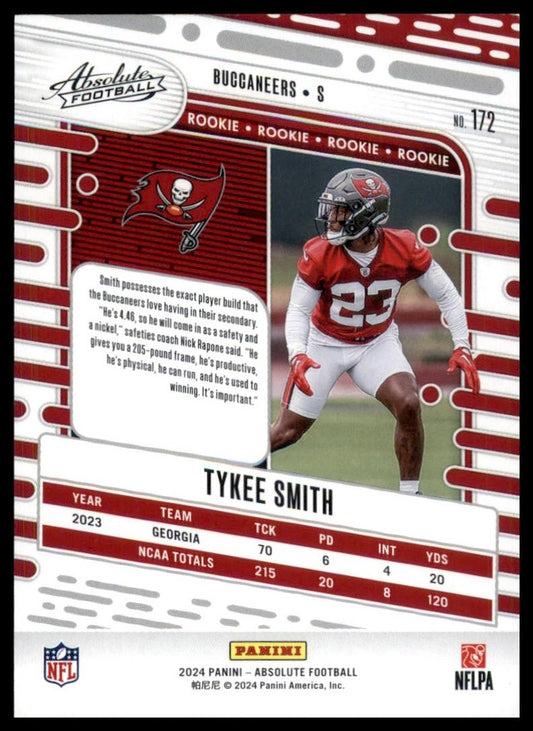 2024 Panini Absolute Rookie Tykee Smith #172 Tampa Bay Buccaneers Football Card