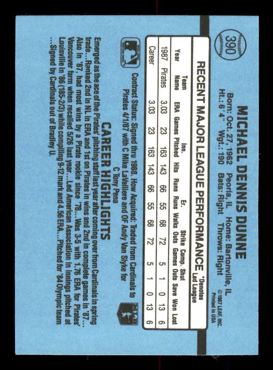 1988 Donruss #390 Mike Dunne EX Pittsburgh Pirates Baseball Card