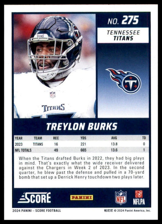 2024 Score Treylon Burks #275 Tennessee Titans Football Card NFL Sports