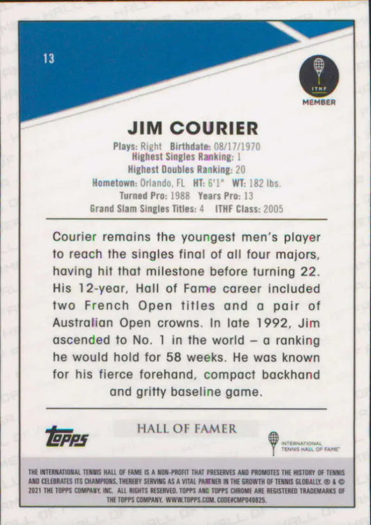 2021 Topps Chrome #13 Jim Courier NM-MT Tennis Card