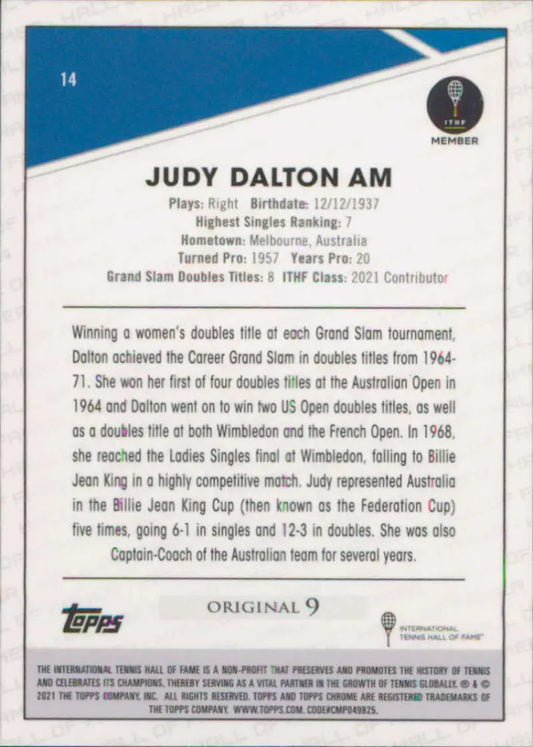 2021 Topps Chrome #14 Judy Dalton NM-MT Tennis Card