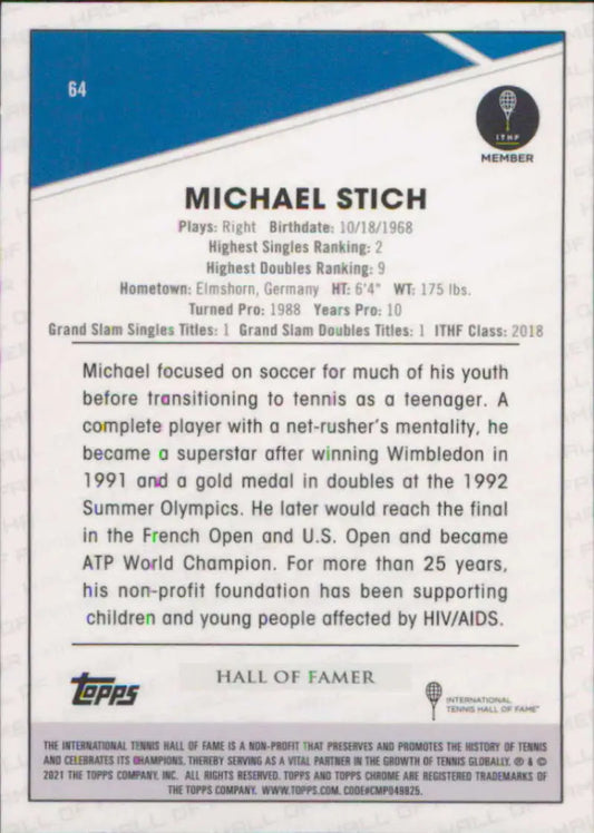 2021 Topps Chrome #64 Michael Stich NM-MT Tennis Card