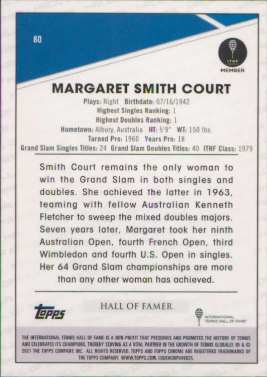 2021 Topps Chrome #80 Margaret Smith Court NM-MT Tennis Card