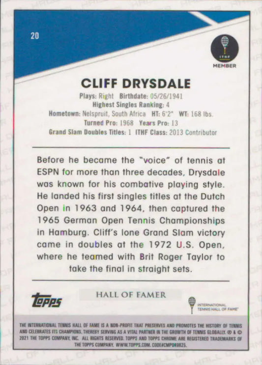 2021 Topps Chrome #20 Cliff Drysdale NM-MT Tennis Card