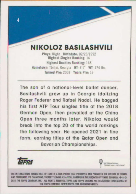 2021 Topps Chrome #4 Nikoloz Basilashvili NM-MT Tennis Card