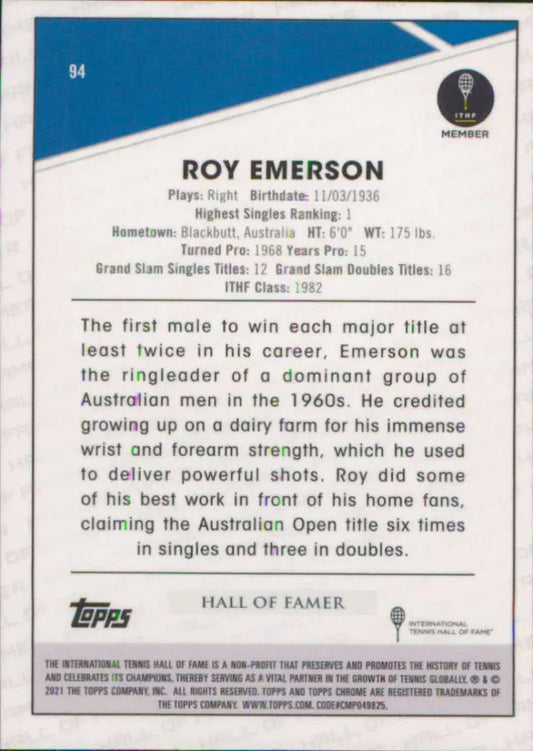 2021 Topps Chrome #94 Roy Emerson NM-MT Tennis Card