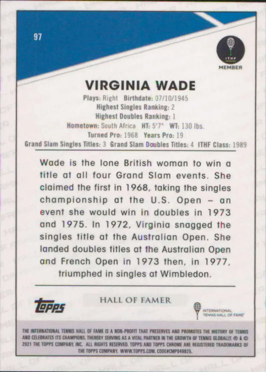 2021 Topps Chrome #97 Virginia Wade NM-MT Tennis Card