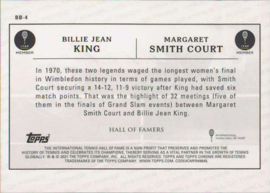 2021 Topps Chrome Battle of the Baselines Refractor #BB-4 Billie Jean King/Margaret Smith Court NM-MT Tennis Card