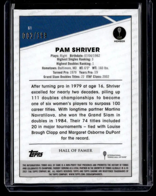 2021 Topps Chrome Refractor Purple #61 Pam Shriver NM-MT 2/199 Tennis Card