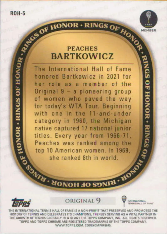 2021 Topps Chrome Rings of Honor Refractor #ROH-5 Peaches Bartkowicz NM-MT Tennis Card