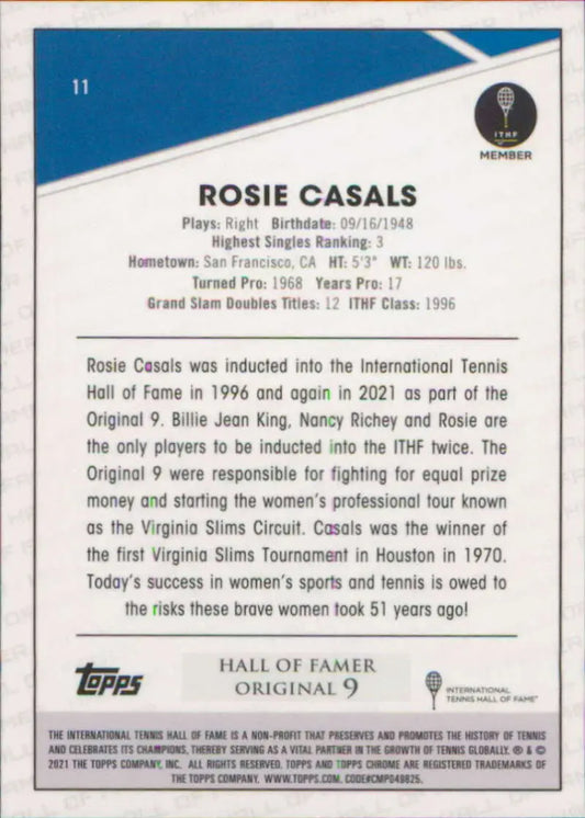 2021 Topps Chrome #11 Rosie Casals NM-MT Tennis Card