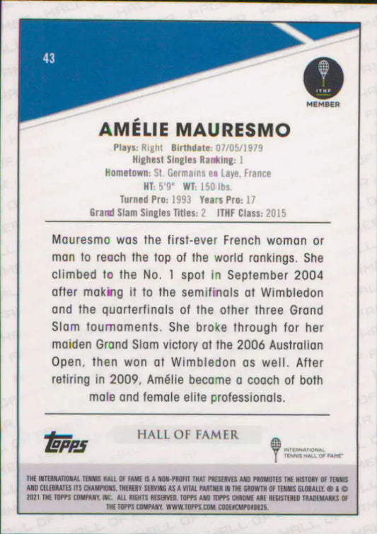 2021 Topps Chrome #43 Amelie Mauresmo NM-MT Tennis Card