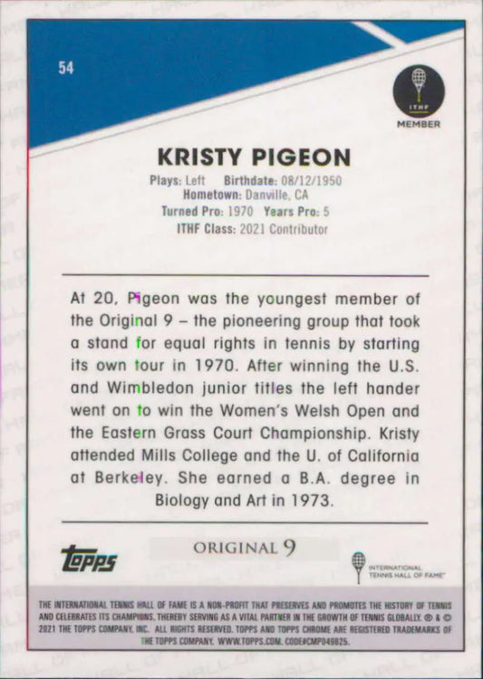 2021 Topps Chrome #54 Kristy Pigeon NM-MT Tennis Card