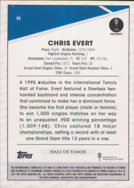2021 Topps Chrome #99 Chris Evert NM-MT Tennis Card
