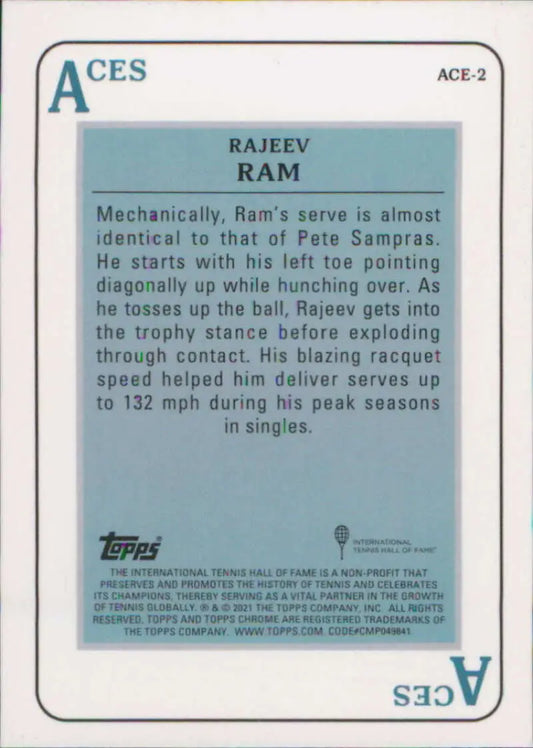2021 Topps Chrome Aces Refractor #ACE-2 Rajeev Ram NM-MT Tennis Card