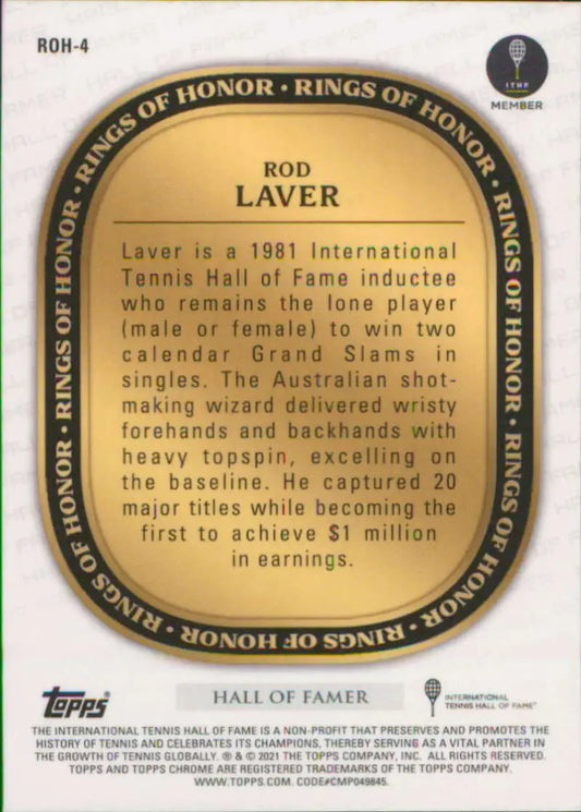 2021 Topps Chrome Rings of Honor Refractor #ROH-4 Rod Laver NM-MT Tennis Card