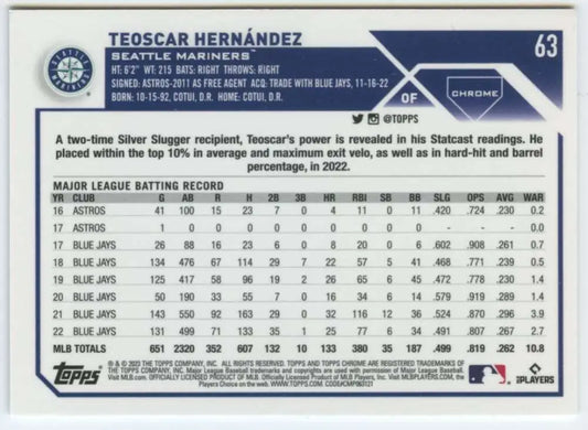 2023 Topps Chrome #63 Teoscar Hernandez NM-MT Seattle Mariners Baseball Card