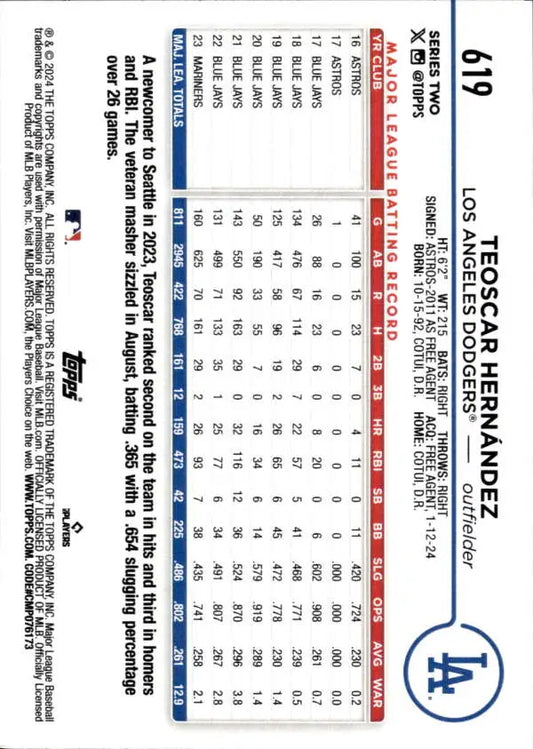 2024 Topps #619 Teoscar Hernandez NM-MT Los Angeles Dodgers Baseball Card