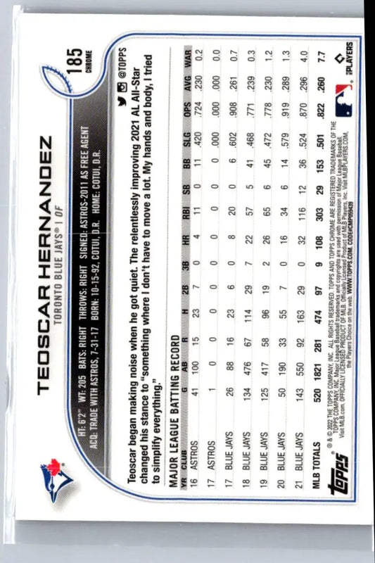 2022 Topps Chrome Raywave #185 Teoscar Hernandez - Toronto Blue Jays