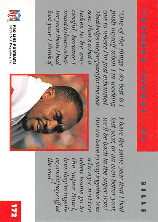 1991 Pro Line Portraits #172 Thurman Thomas EX-NM Buffalo Bills Football Card