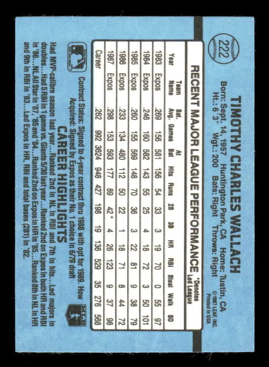 1988 Donruss #222 Tim Wallach EX Montreal Expos Baseball Card