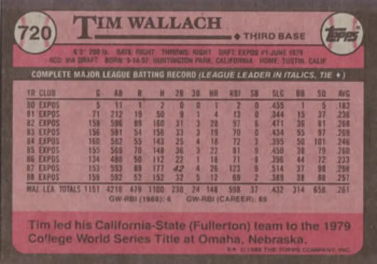 1989 Topps #720 Tim Wallach NM-MT Montreal Expos Baseball Card