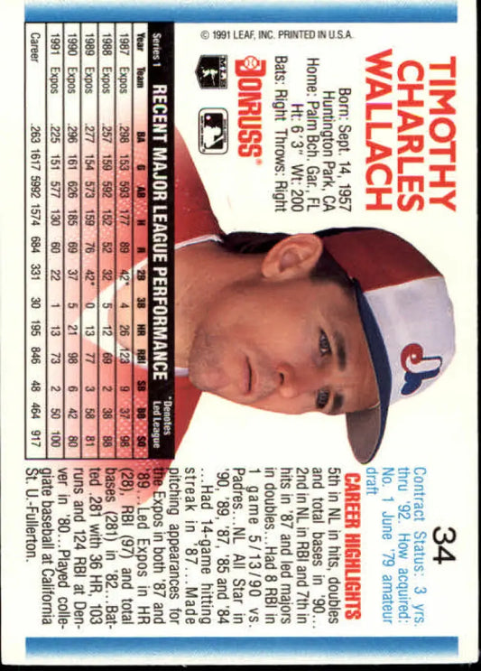 1992 Donruss #34 Tim Wallach NM-MT Montreal Expos Baseball Card
