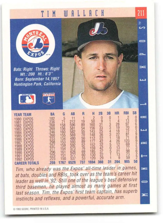 1993 Score #211 Tim Wallach NM-MT Montreal Expos Baseball Card