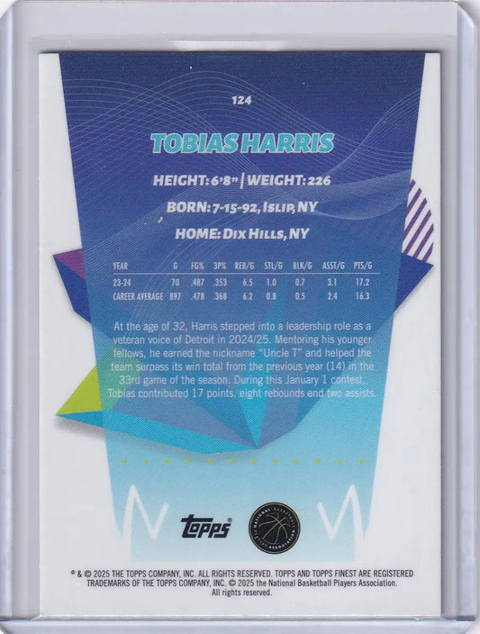 2024-25 Finest Basketball Sky Blue #124 Tobias Harris - Detroit Pistons