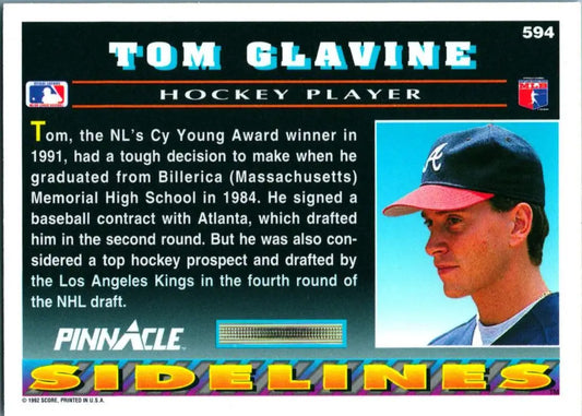 1992 Pinnacle #594 Tom Glavine EX Atlanta Braves Baseball Card