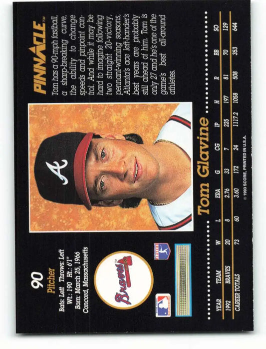 1993 Pinnacle #90 Tom Glavine NM-MT Atlanta Braves Baseball Card