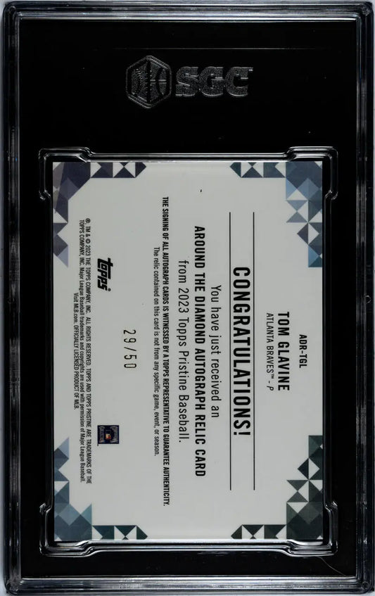 2023 Topps Pristine Around The Diamond Relic Refractor Gold #ADR-TGL Tom Glavine SGC 9.5 MINT+ MEM Auto 29/50 Atlanta Braves Bas