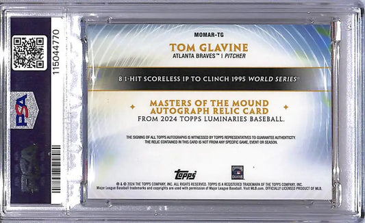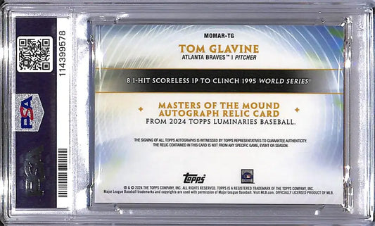 2024 Topps Luminaries Masters of the Mound #MOMAR-TG Tom Glavine PSA 8 NM-MT MEM Auto 10/25 Atlanta Braves