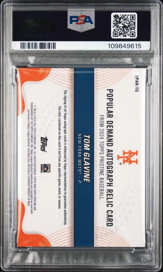 2024 Topps Pristine Orange #DPARTG Tom Glavine PSA 9 MINT MEM Auto 4/25 New York Mets Baseball Card