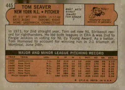 1972 Topps #445 Tom Seaver