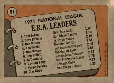 1972 Topps #9 N.L. E.R.A. Leaders (Tom Seaver / Dave Roberts / Don Wilson) VG-EX