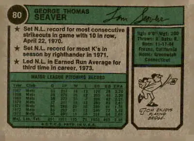 1974 Topps #80 Tom Seaver EX-NM