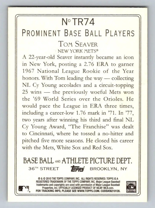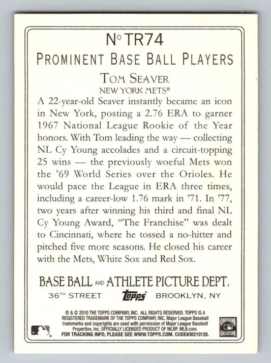 2010 Topps #TR74 Tom Seaver Turkey Red New York Mets