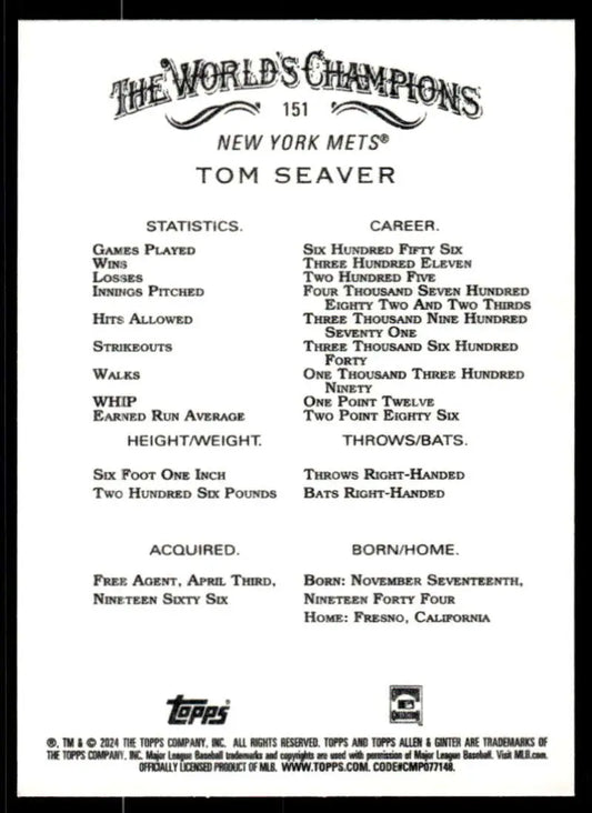 2024 Allen & Ginter #151 Tom Seaver NM-MT New York Mets Baseball Card