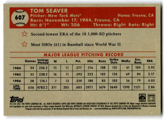2021 Topps Chrome Platinum Anniversary #607 Tom Seaver NM-MT New York Mets Baseball Card