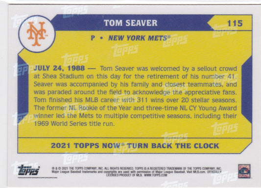 2021 TURN BACK THE CLOCK #115 TOM SEAVER- NEW YORK METS