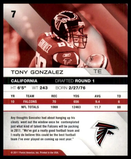 Tony Gonzalez 2011 Panini Rookies & Stars Longevity /249 #9 Atlanta Falcons
