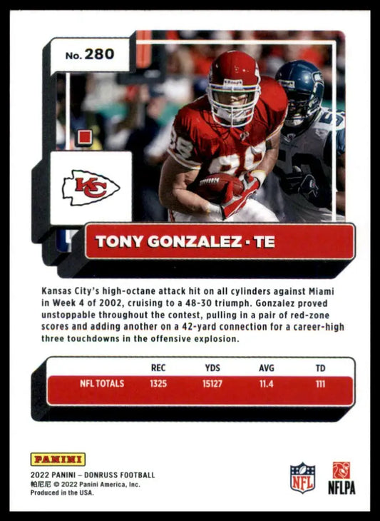 Tony Gonzalez 2022 Donruss #280 Kansas City Chiefs