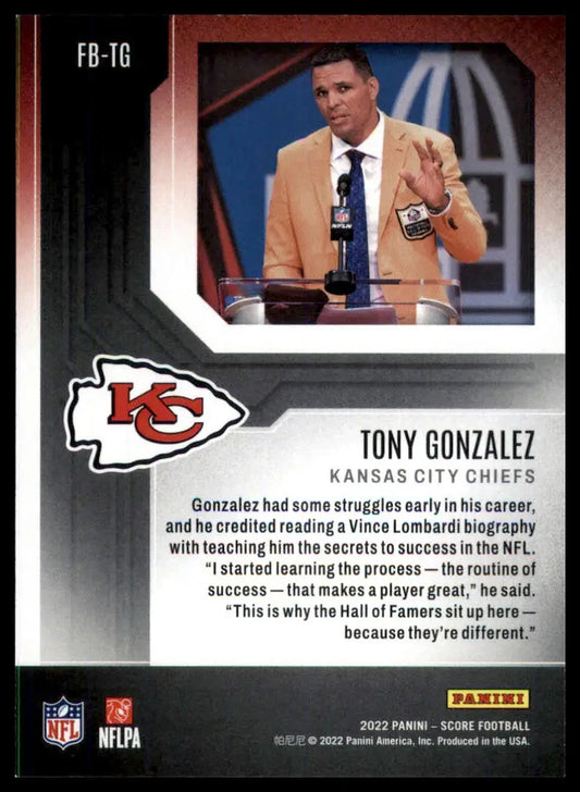Tony Gonzalez 2022 Score First Ballot #FB-TG Kansas City Chiefs