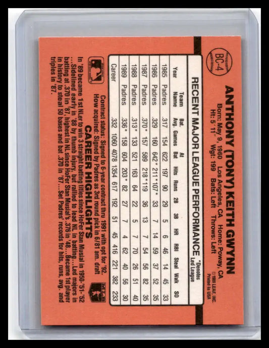 1990 Donruss #BC-4 Tony Gwynn NM-MT San Diego Padres Baseball Card