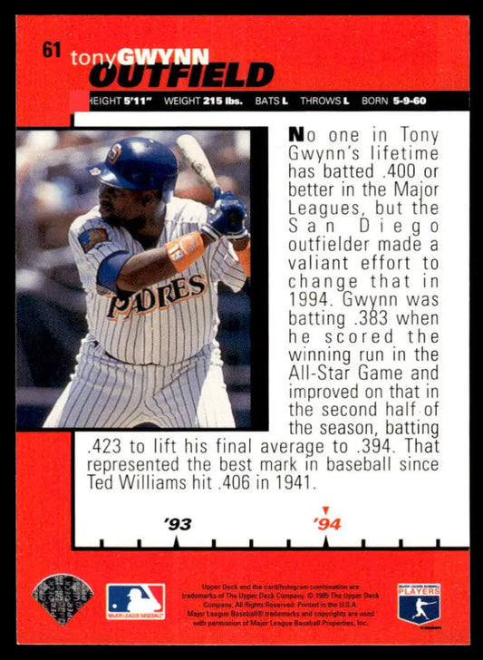 1995 Collector's Choice #61 Tony Gwynn NM/MT San Diego Padres Baseball Card