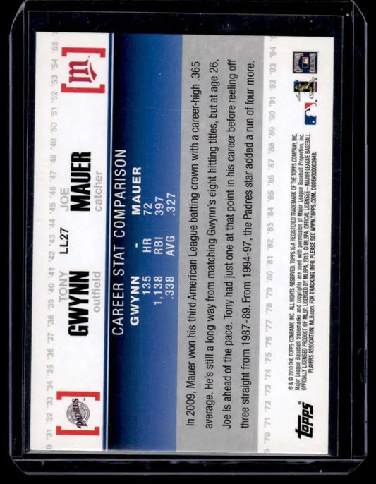 2010 Topps #LL27 Tony Gwynn / Joe Mauer San Diego Padres / Minnesota Twins NM-MT Baseball Card