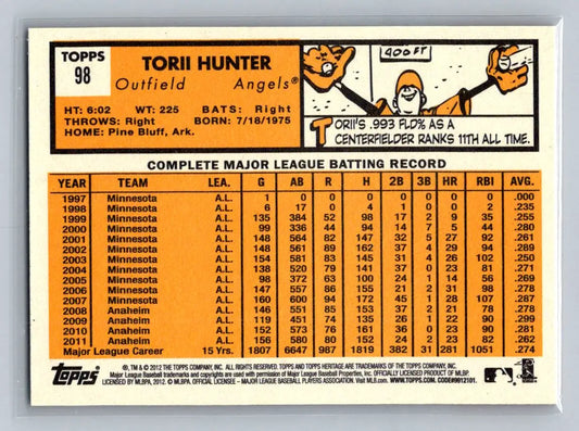 2012 Topps Heritage #98 Torii Hunter Los Angeles Angels