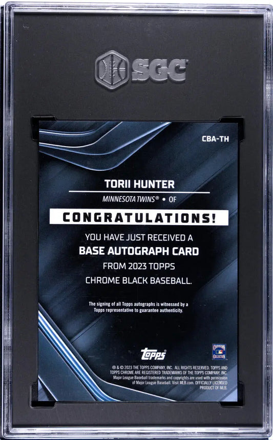 2023 Topps Chrome Black #CBA-TH Torii Hunter SGC 10 Gem Auto 126/150 Minnesota Twins Baseball Card